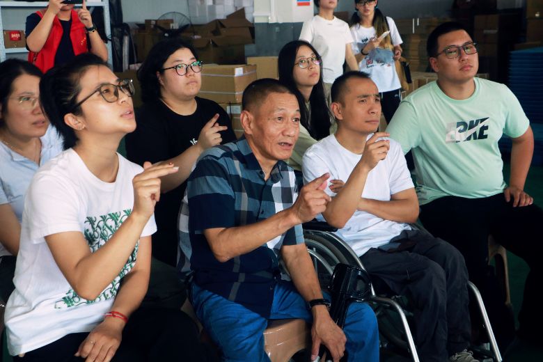 在前期學(xué)習(xí)基礎(chǔ)上,實踐團(tuán)奔赴蕭山區(qū)助殘扶貧科創(chuàng)園,開展手語教學(xué)活動,并圍繞殘障人士的溝通需求與生活狀況展開采訪調(diào)研。