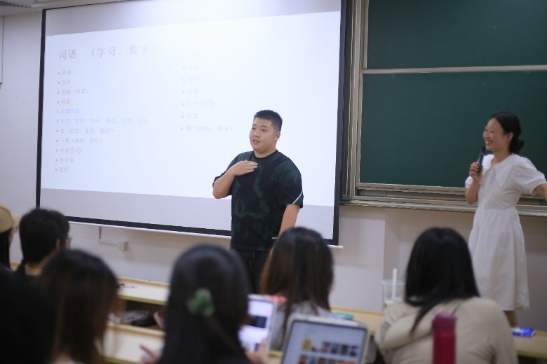 教學(xué)過程中,同學(xué)們學(xué)習(xí)熱情高漲。面對手語動作的精細(xì)要求和與口語表達(dá)完全不同的思維方式,大家認(rèn)真觀察老師的每一個手勢,反復(fù)模仿練習(xí)。課程設(shè)置了現(xiàn)場提問、個人展示等環(huán)節(jié),同學(xué)們互相糾正動作,嘗試用剛學(xué)到的手語進(jìn)行簡單對話,為后續(xù)與殘障群體交流互動筑牢基礎(chǔ)。
