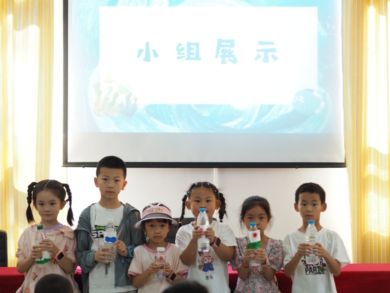 科學小實驗板塊成為了孩子們探索世界的奇妙窗口。志愿者們化身“科學魔法師”,利用生活中常見的材料,帶領孩子們動手實踐,感受科學魅力。在《聽話的沉浮子》課上,孩子們用吸管、回形針和礦泉水瓶,親手制作浮沉子,通過按壓瓶身觀察其上下沉浮,直觀理解了帕斯卡定律和阿基米德原理,也明白了潛水艇的工作原理�!兑后w魔法師》課堂上的“牙簽穿透術”讓孩子們驚嘆連連,覆蓋濕紙巾的滿水瓶倒置后水竟不灑出,深入淺出的講解揭開了水的表面張力奧秘。《小偵探查指紋》活動則充滿了偵探般的樂趣,孩子們在涂抹碘伏、加熱杯子的過程中,親眼見證指紋神奇顯現(xiàn),學習了油脂與碘蒸汽反應的化學知識,也強化了保護個人生物信息的意識。而《空氣炮》的制作與小組PK賽,更是將活動氣氛推向高潮,氣球回彈產(chǎn)生的強勁氣流讓孩子們興奮不已,也生動理解了氣體壓強與流動的原理。這些寓教于樂的小實驗,不僅鍛煉了孩子們的動手能力,更在他們心中播下了熱愛科學、勇于探索的種子。