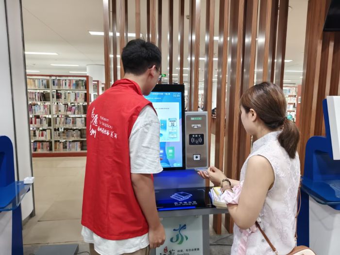 圖為實踐團成員幫助群眾自助借書 常暢供圖