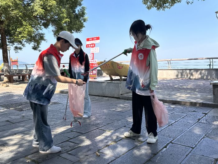 在追溯淮軍文化的同時,實踐團成員們也將目光投向了姥山島的生態環境。為了還灘涂一片潔凈,實踐團成員們開展了凈灘環境“煥新顏”。他們手持垃圾夾,沿著灘涂仔細搜尋,將散落在各處的垃圾一一撿起。盡管烈日炎炎,但成員們沒有絲毫退縮,用實際行動踐行著環保理念。經過不懈努力,灘涂的面貌煥然一新,重新煥發出勃勃生機。這場凈灘行動,不僅是對環境的清掃,更是用青春力量踐行環保承諾的生動注腳。
