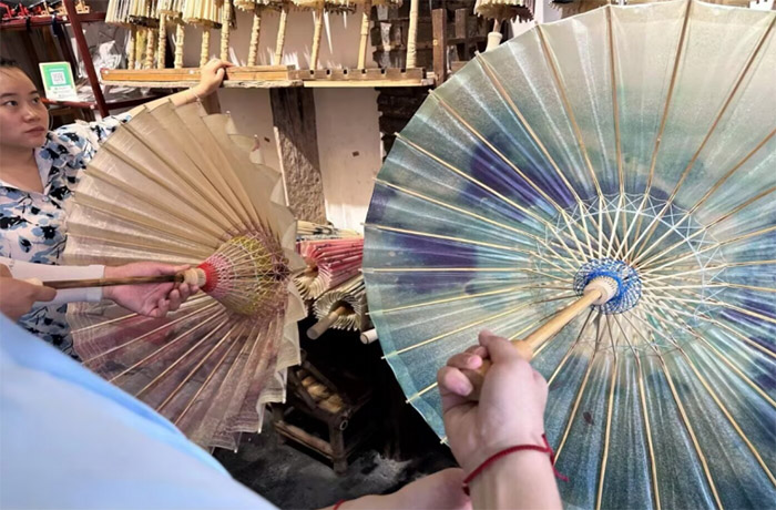 盡管油紙傘技藝曾因尼龍傘的普及而式微,但傳承人們從未停止思考與探索。他們堅(jiān)守傳統(tǒng)工藝精髓,同時(shí)融入現(xiàn)代設(shè)計(jì)理念,并借助政府支持的非遺研學(xué)項(xiàng)目,吸引八方游客親手體驗(yàn),為油紙傘文化注入了新的生命力,推動(dòng)其活態(tài)傳承之路越走越寬廣。