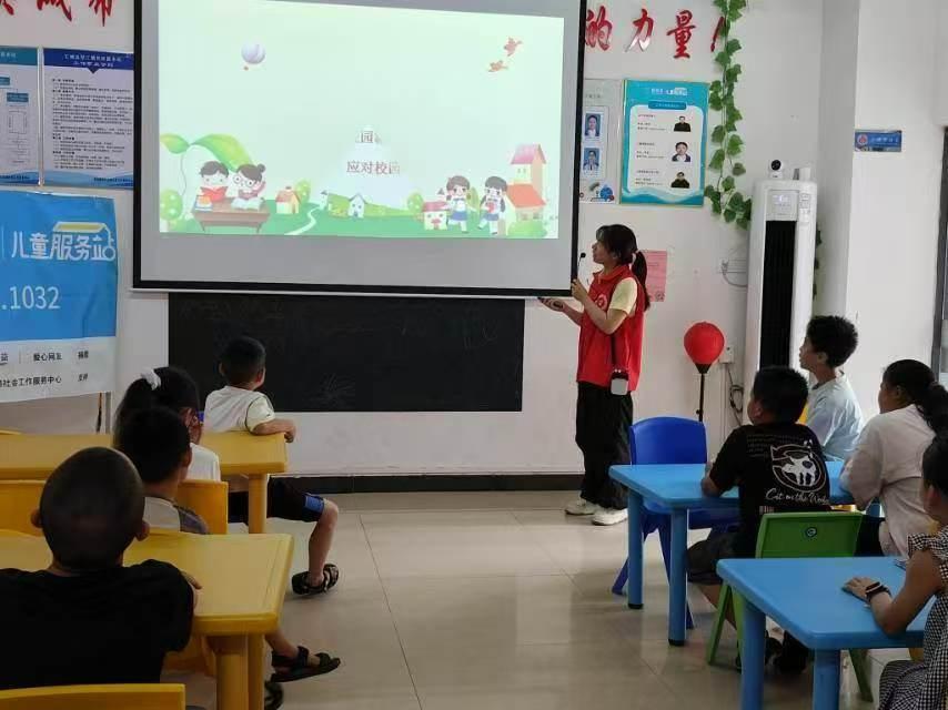 7月9日上午9點,活動在“拍手歌”中開始:“你拍一,我拍一,霸凌行為要警惕;你拍二,我拍二,遇到欺負不害怕……”孩子們跟著節奏拍手,很快進入狀態。