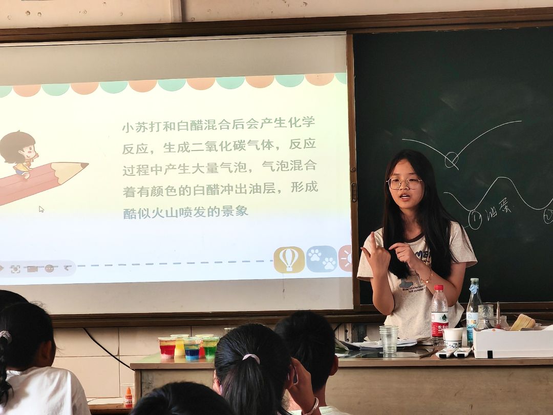 最后一節(jié)課以“海底火山爆發(fā)”和“彩虹泡泡龍”兩個(gè)趣味實(shí)驗(yàn)為核心,帶領(lǐng)學(xué)生們探索科學(xué)奧秘。在“海底火山”實(shí)驗(yàn)中,學(xué)生們通過(guò)小蘇打與白醋的反應(yīng),模擬了火山噴發(fā)的場(chǎng)景,并理解了密度與化學(xué)反應(yīng)的原理。