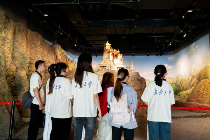 為了更好地感受青藏多民族文化交融和獨特歷史淵源,長安大學弘揚“兩路”精神實踐隊于7月16日上午前往青海藏文化博物院,參觀調研中國藏族文化藝術彩繪大觀、藏式建筑、藏族卡墊等。透過歷史文物看青藏高原,其中濃縮著民族交往交流交融的歷史,也承載著中華民族高尚的審美情趣,實踐隊隊員深刻認識到源遠流長、博大精深的中華文明,將以青春之力投身新時代文化建設,讓民族文化的魅力在傳承中煥發新彩。