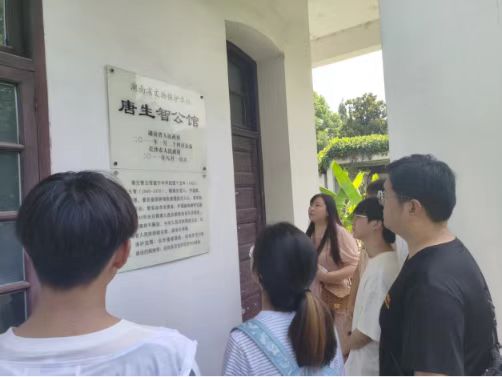 隊伍成員在毛澤東青年藝術雕塑前合影 日間的陽光,帶著幾分溫和的力道灑在唐生智公館的青磚黛瓦上,給這座歷經歲月洗禮的建筑鍍上了一層淡淡的金色。師生們整齊地駐足在那塊 “唐生智公館” 的標牌前,標牌的銅質邊框在陽光下泛著沉穩的光澤,上面的字跡清晰而莊重。大家的目光緊緊鎖定在標牌之上,神情專注而肅穆,仿佛要從這寥寥數語中,探尋出一段波瀾壯闊的歷史。