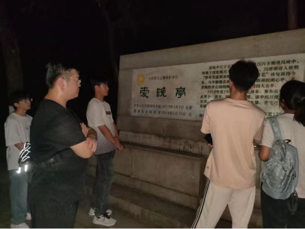 實踐隊成員認真閱讀關于“愛晚亭” 的知識參觀過程中,師生們認真閱讀、交流感悟。明白了在實地觸摸歷史痕跡,才真切懂得先輩們的不易,紅色精神不是書本上的文字,而是要我們傳承踐行的力量 。老師也寄語同學們,要從紅色景點中汲取養分,將愛國情、奮斗志融入青春征程。