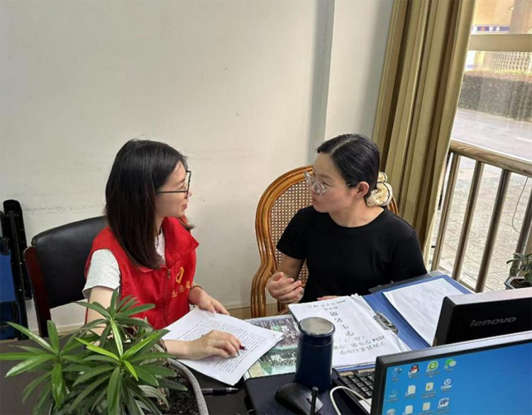 (圖為實踐團成員與跨學段教師進行交談,婁詩琪 攝)