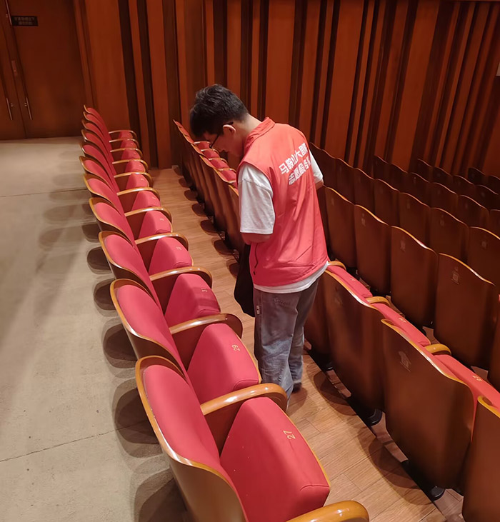 那天最后,我們二十多個志愿者分成四組打掃,有人哼起話劇里的插曲,有人笑說“今天走的路能繞劇場三圈”,空蕩蕩的觀眾席里,回音把疲憊都泡軟了。