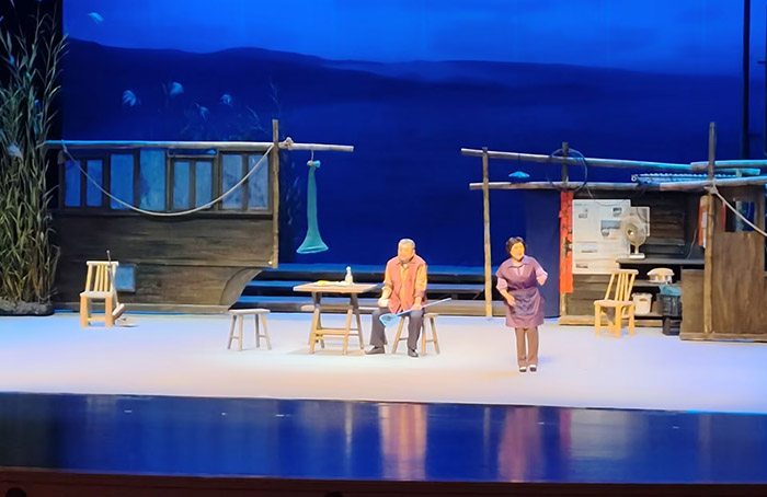 演員的臺詞帶著本地口音,吵架時的方言罵罵咧咧,和解時又突然哽咽。有一幕老兩口坐在桌前,爺爺給奶奶盛湯,手卻抖得厲害,湯灑在桌上,奶奶默默擦干凈,兩人沒說一句話,臺下卻傳來壓抑的抽泣——原來最戳人的戲,藏在不用臺詞的細節里。