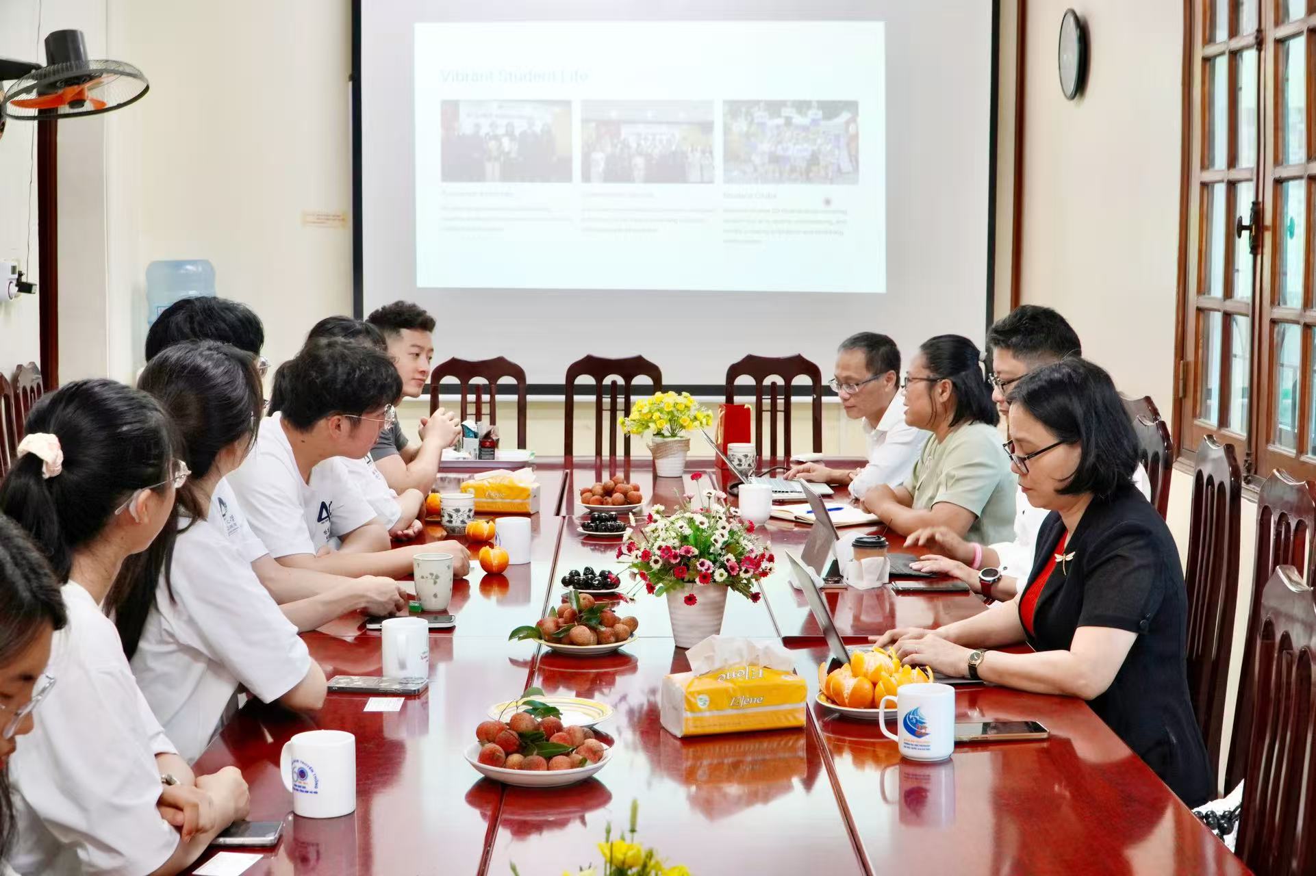 (三)在搭建青年交流橋梁的互動中傳遞友誼之聲實踐隊走進河內國家大學,大家圍繞“青年在跨境合作中的角色”、“中越文化交流合作”等話題展開討論。