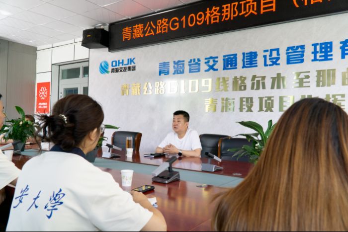 青海省交通建設管理有限公司在青海省交通建設管理有限公司,與長安大學1999級校友,省交建公司黨委委員、副總經(jīng)理,G109指揮部指揮長余海龍進行交流座談。余海龍向實踐隊詳細介紹了青藏公路G109線格爾木至那曲段提質(zhì)改造工程的項目概況與建設意義。“做這一行是很苦很累的,對人的生理和心理方面都是一種挑戰(zhàn),但是當我們走在自己參與和主持修建的路上,那種獲得感和滿足感是別人無法比擬的”,余海龍表示,“在長安大學學習的過程中,培養(yǎng)了我公路人的決心和勇氣,讓我一直堅守本心、踐行使命,不忘修好每條路、服務好群眾的理念”。