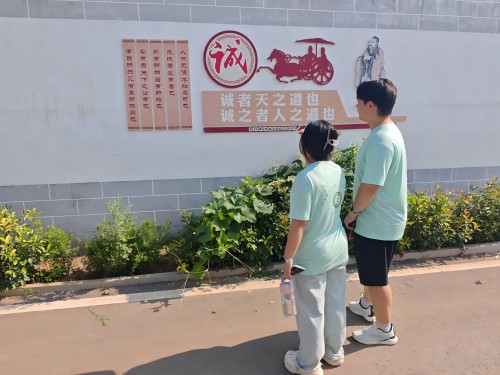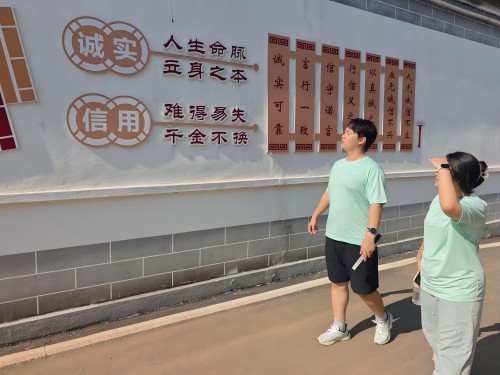 此次活動,實踐團成員以參觀誠信文化街為途徑,系統調研洼子村文化建設情況。過程中,一面題寫“人無信不立,業無信必衰,國無信則危”的文化墻率先進入考察視野。實踐團成員在文化墻前駐足研讀,就誠信理念在個人成長、企業發展及國家治理層面的重要價值形成深刻認知。