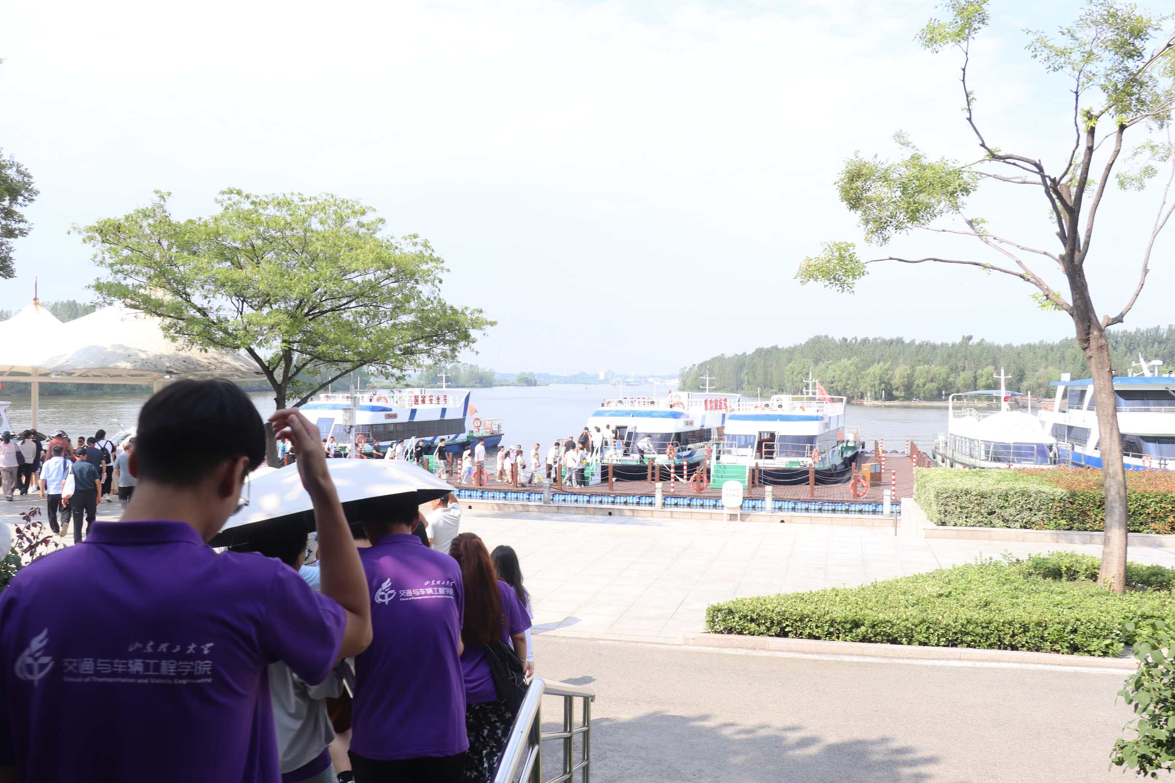 清晨的微山湖霧氣氤氳,上午九點,實踐團成員在隊長李佳寧的組織下,有序登上渡輪。湖面微風拂過,帶著濕潤的水汽,成員們望著逐漸清晰的島嶼輪廓,難掩期待之情。