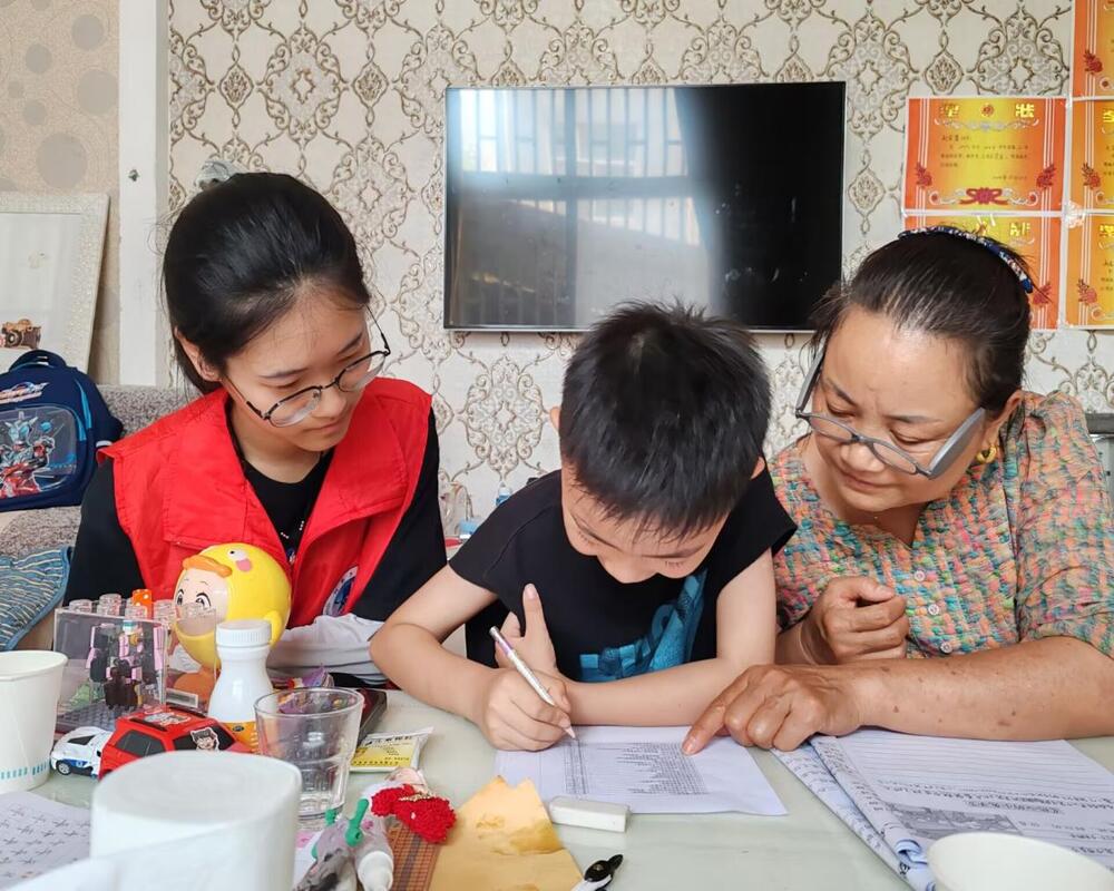 7月12號早上八點,志愿者們準時出發,在天邊楊村,大趙村,下停村等村落走家串戶,穿梭在崎嶇的山路之間。每走進一戶學生家中,在說明支教身份后,家長們都滿臉熱忱地迎上來,忙著端出水果、沏上熱茶招待。“老師們能來太不容易了,給孩子們帶來了這么多關心和陪伴,真是打心底里感謝!”樸實的話語里,滿是家長們對志愿者們的認可與感激,也道出了鄉村家庭對孩子獲得關愛陪伴的期盼。