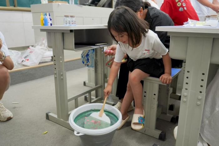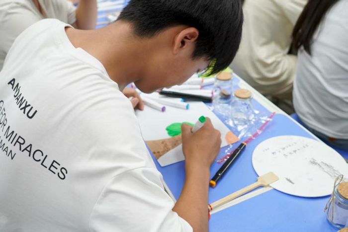 "每個人的作品都是獨一無二的,就像你們每個人都是特別的。"同學們專注地在扇面上描繪著屬于自己的圖案,有的選擇了明亮的色調(diào),有的則偏好淡雅的色彩。八年級的李同學分享道:"平時很少有機會這樣靜下心來創(chuàng)作,看著色彩在扇面上慢慢暈染開來,感覺特別治愈。"
