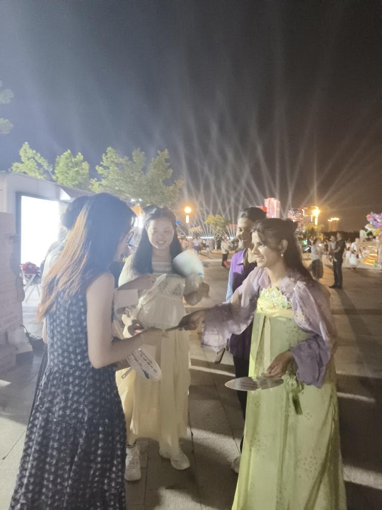 緊貼熱點接地氣,健康服務零距離選擇在蘇超聯賽第二現場——紫瑯湖進行活動,正是團隊“緊貼熱點”思路的體現。這里匯聚了大量市民和熱情的球迷,人流量大、關注度高。身著漢服的醫學生們穿梭其中,巧妙地將健康科普和傳統文化宣傳融入市民喜聞樂見的休閑娛樂場景,讓服務更“接地氣”,傳播更有效。 現場特邀專業中醫專家坐鎮,提供免費的中醫健康咨詢。志愿者們精心準備了具有驅蚊防病功效的中藥香囊以及印有中醫養生知識的精美折扇,免費發放給來往市民。針對不同人群的健康需求,團隊準備了涵蓋中醫養生、婦幼保健、常見病防治等多方面的科普宣傳手冊。身著漢服的志愿者們本身就是一道流動的文化風景線。他們在發放物料、引導咨詢的過程中,自然而然地成為中華傳統服飾和禮儀的“代言人”,吸引了眾多市民駐足、拍照,無形中增進了公眾對傳統文化的親近感。