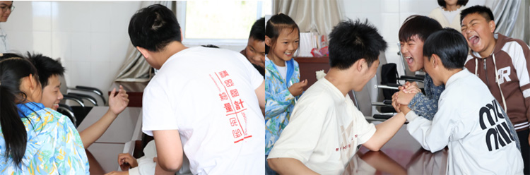 在這最后一天,老師與小朋友們進行了友好的掰手腕對決,老師以一敵二,拼盡全力,遺憾落敗。小朋友們大聲歡笑,都在慶祝這一刻的勝利。