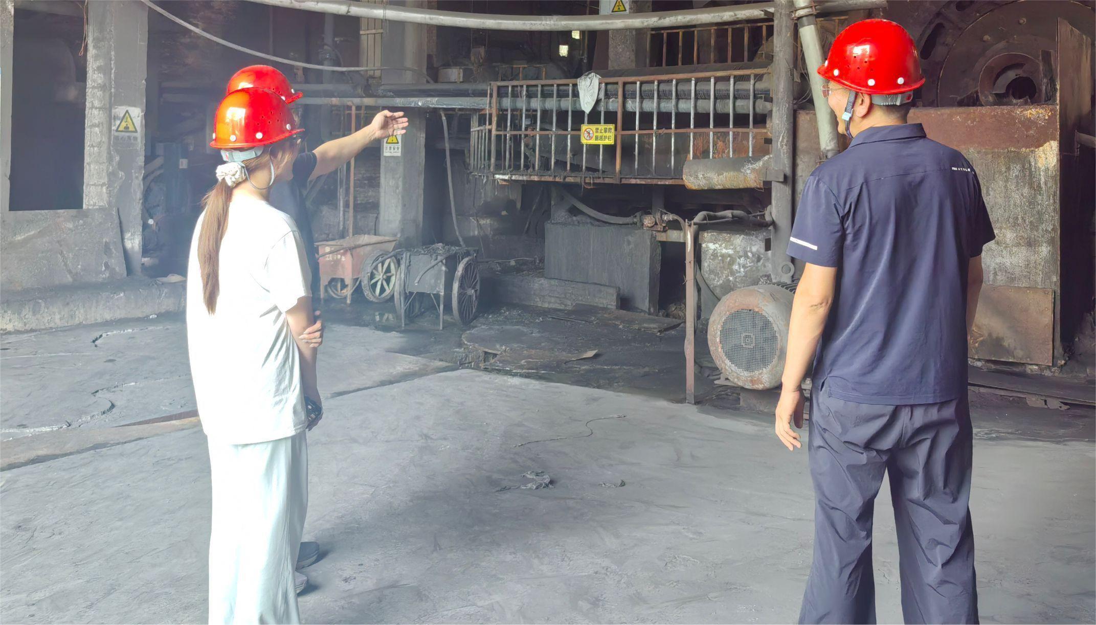 在生產車間的調研中,團隊成員緊跟技術人員的腳步,全程追蹤礦石從原始形態到成品的蛻變過程。從顎式破碎機的轟鳴啟動,到振動篩的精細分級,再到成品料倉的有序收納,成員們細致觀察設備運行能耗、工藝銜接效率,關注粉碎環節是否有粉塵減排措施,篩分流程能否精準分級以減少資源浪費,力求明晰每一步對礦石品質、能耗控制的作用,以及這些產品供給對后端電解加工工藝降碳的影響。