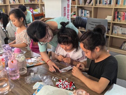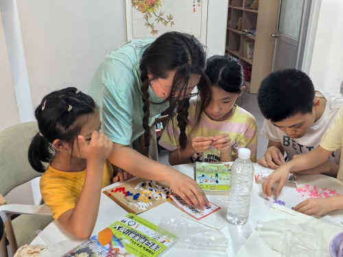 圖為實踐團成員幫助同學搭建樂高