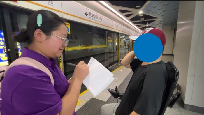 實踐團成員見到了常乘地鐵出行的殘疾人士王先生。“現在出入站都有無障礙電梯,全程也會有工作人員的幫助,濟南地鐵挺好的。”王先生平靜地坐在輪椅上,語氣里有對地鐵服務的認可,也有對細節的肯定。他提到,換乘時工作人員都會主動把輪椅斜坡板拿出來擺上,并耐心幫助。
