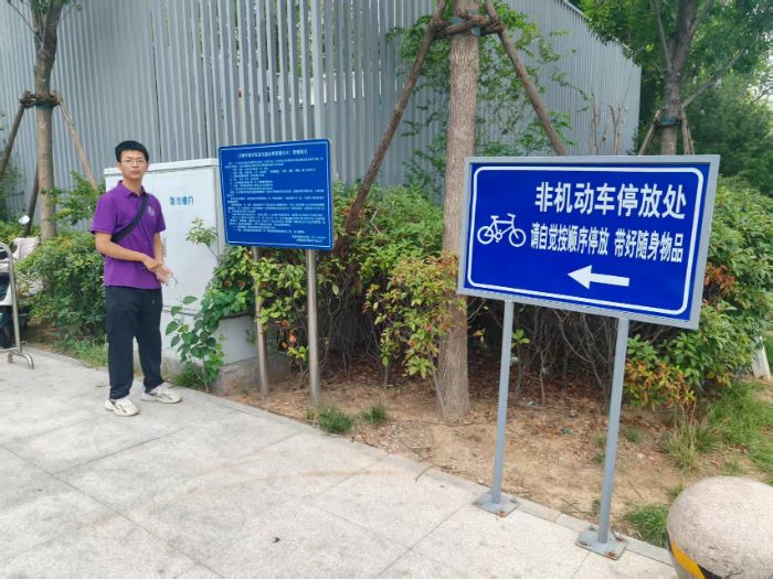 益康路站周邊區域居民樓較多,站外,非機動車停放處較多,不少乘客反映停車困難,電動車充電樁少等問題。停車區被擠得水泄不通,存在電動車隨意停放、占道現象。