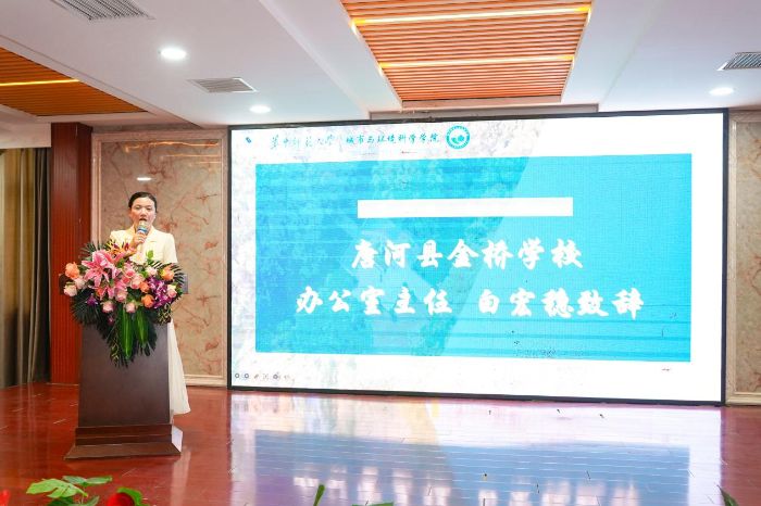 指導(dǎo)老師蔡樂代表全體實(shí)踐隊(duì)成員感謝唐河縣與金橋?qū)W校搭建的“金色橋梁”,他勉勵(lì)隊(duì)員們以匠心執(zhí)教傳遞知識(shí)溫度,用赤忱相伴守護(hù)學(xué)子豐羽。實(shí)踐隊(duì)隊(duì)員代表黃韻晨表達(dá)了支教初心,承諾用飽滿的熱情投入教學(xué)。金橋?qū)W校學(xué)生代表張成毅講出了孩子們的滿懷期待,展現(xiàn)出唐河學(xué)子們積極向上的精神面貌。最后,金橋?qū)W校校長(zhǎng)桂慶明宣布實(shí)踐活動(dòng)正式開始。