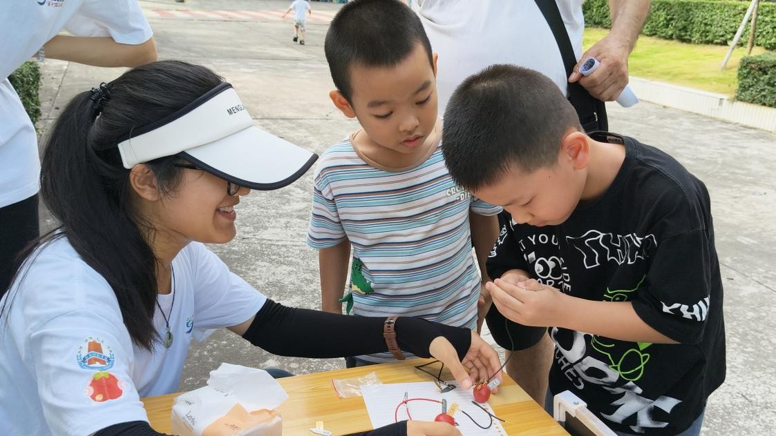 小朋友積極參與“水果電池”實驗