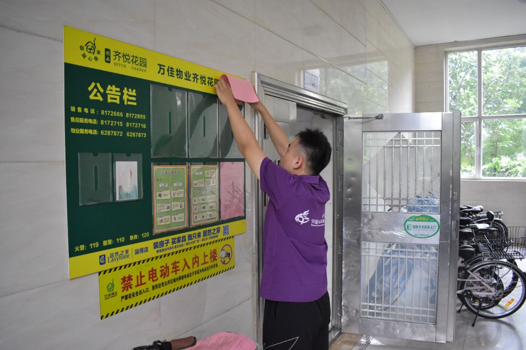 將投放地點選在樓道等一些公共區(qū)域,能夠最大程度的讓居民們了解到政府的相關政策,做到精準投放,讓公益與服務有效果。首先,實踐團成員考慮的是張貼地點的安全性,借助此次宣傳工作,檢查樓道內燈光設施的工作狀況,以及電梯的安全運行情況,對有問題的設施及時進行維修處理,避免樓道昏暗以及電梯線路老化,危及居民們的生命安全。