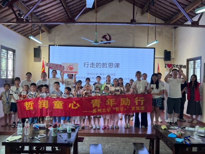 為把抗戰精神種進童心,讓哲學思考扎根田野,2025年7月10日,蘇州大學“哲學+”實踐團深入吳江區震澤鎮金星村、齊心村、眾安橋村開展實踐活動,活動旨在紀念抗日戰爭勝利暨世界反法西斯戰爭勝利80周年,帶領當地小朋友學習抗戰歷史,培養家國情懷與思辨精神;調研新農村發展現狀,看當地如何在“守正”與“創新”之間覓尋一條“文化傳承與產業振興”互融共生的特色發展之路。