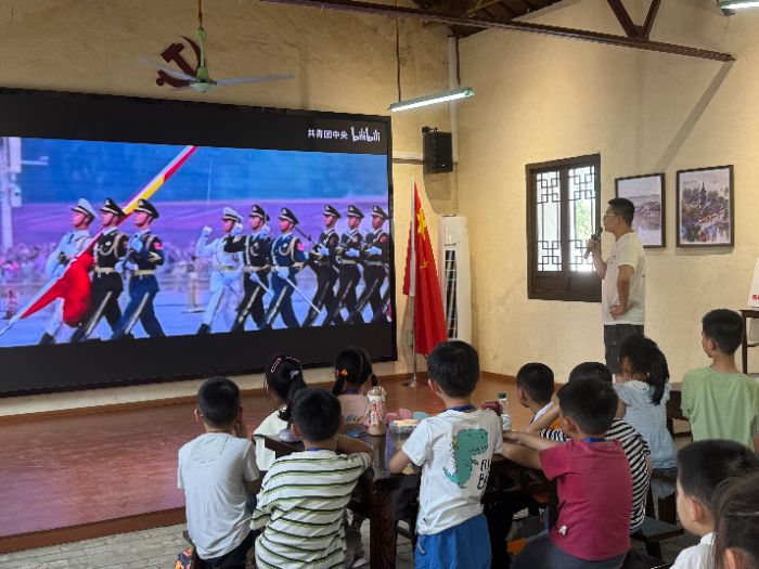 隨后,實踐團前往金星村黨建小院以別開生面的互動哲思課為媒,帶領當地兒童重溫抗戰歷史。活動采用“誦讀+觀影+思辨”的創新模式,通過互動對話的特色形式激發青少年的歷史思考。