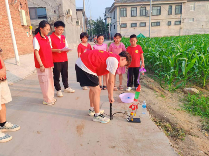 科普課程里亮點紛呈。“化學火山噴發”實驗中,當五顏六色的“巖漿”噴涌而出時,孩子們的眼中滿是驚喜;水火箭制作課上,大家親手組裝模型,戶外發射時的歡呼聲響徹村莊。