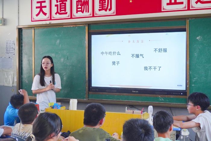 實(shí)踐隊(duì)隊(duì)員充分發(fā)揮專業(yè)優(yōu)勢(shì),將地理知識(shí)轉(zhuǎn)化為生動(dòng)有趣的課堂體驗(yàn)。隊(duì)員王昱雯運(yùn)用河南與新疆人口密度的數(shù)據(jù)對(duì)比,引導(dǎo)學(xué)生思考區(qū)域差異背后的自然與人文因素,并借助地球公轉(zhuǎn)動(dòng)態(tài)模型,向?qū)W生直觀展現(xiàn)了地球運(yùn)動(dòng)與四季更迭的奧秘,將抽象的天文原理轉(zhuǎn)化為觸手可及的景象,啟發(fā)學(xué)生解碼身邊的地理現(xiàn)象。