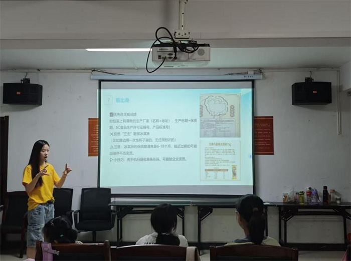 (通訊員:李靜 龔琬婷)7月23日下午,華中農業大學食品科學技術學院“食品安全與營養中國行”博士團走進武漢市江夏區三潭社區,以“冰爽背后的秘密——冰淇淋制作安全與健康指南”為主題開展了一場生動有趣的科普活動。活動由食品科學技術學院博士研究生潘晴彥、碩士研究生楊依倩擔任講師,通過趣味講解和互動,幫助孩子們了解冰淇淋健康指南。三潭社區小朋友們積極參加。