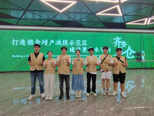 隨后,實踐隊前往濟南萬畝國際糧食增產減損示范區。示范區負責人、濟南城發農業科技有限公司副總經理楊蕾結合示范區規劃沙盤模型為團隊介紹示范區的發展概況、最新政策以及數字環境監測系統的具體操作。實踐隊沿著田埂行走,看到各種類型的智慧灌溉設施協同作業,直觀感受到技術對水土資源保護的實際作用,推動農業發展增“智”提“質”。