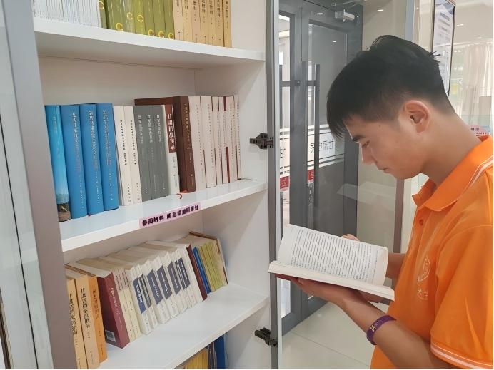 圖為實(shí)踐隊(duì)員在翻閱書籍 通訊員 魏煜彬 供圖