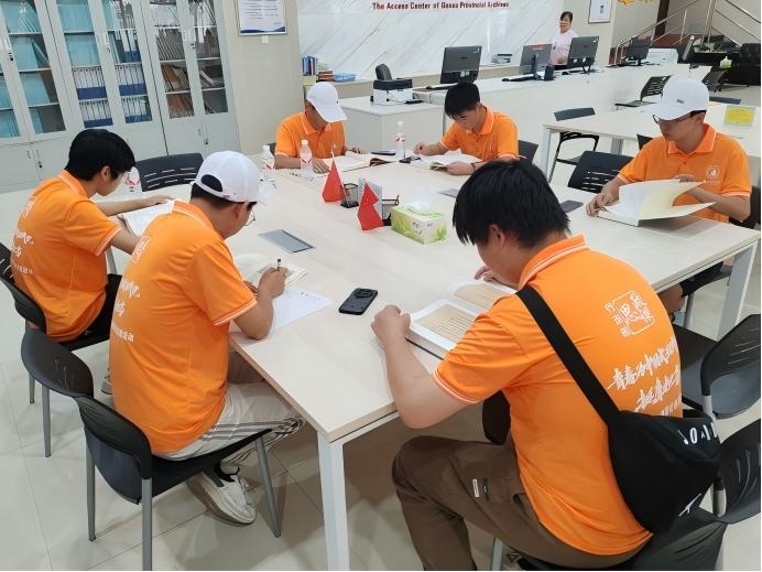 圖為實(shí)踐隊(duì)員們在摘錄抄寫 通訊員 魏煜彬 供圖