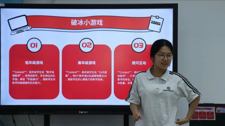 課堂伊始,老師就用趣味游戲打破了數學的“高冷”印象。針對低年級同學,她設計了“數手指猜數字”和“手指湊10”的互動游戲,孩子們反應敏捷,在歡聲笑語中鍛煉了對數字的敏感度。高年級同學則迎來了“24點速算”的頭腦風暴,四張撲克牌在她們手中飛快組合,加減乘除間爭分奪秒,現場氣氛緊張又熱烈。“生活中哪里有數學?”一個簡單的提問,瞬間點燃了孩子們的思維火花,從上課節數到書包里的書本,再到買零食的花費,大家驚奇地發現,原來數學就藏在身邊每一件小事里。