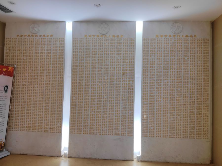 紀念館內有237塊陳展圖片,114件革命實物(遺物),集中展示了從土地革命時期到新中國建立后,犧牲在蕪湖和犧牲在外地的蕪湖籍5432位烈士中最主要的76位烈士的英雄事跡。這些英烈的名字被永遠地鐫刻英名墻之上,同時這些英烈永遠存活在人們心中,他們是“最可愛的人”,他們永垂不朽。