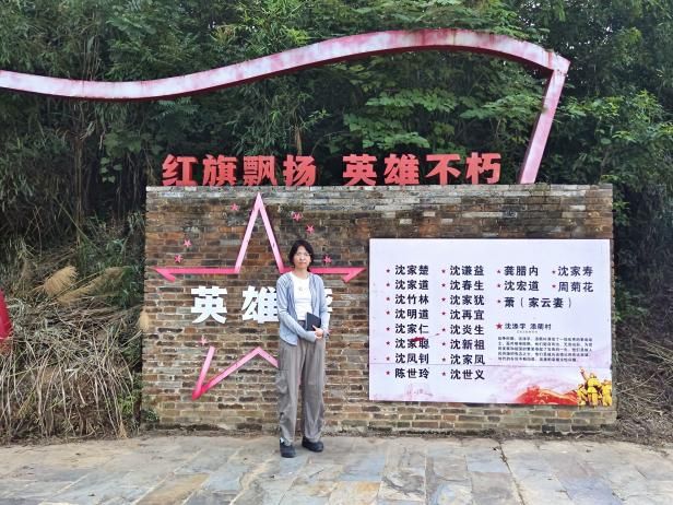 同日下午,實踐團專程赴全國首批革命老村——沈添字村。在英雄榜和紅色廣場前,隊員們深刻感受這片土地厚重的精神底蘊,進一步堅定了以專業能力助力流芳走向國際舞臺的