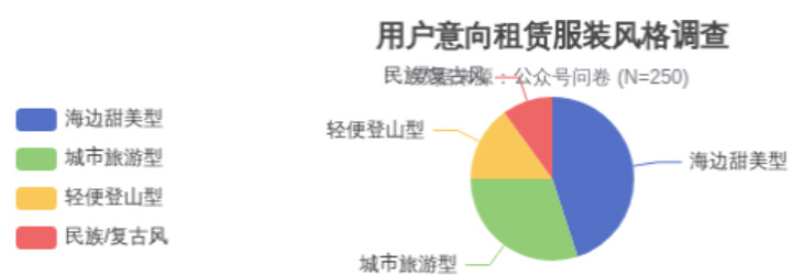 為更準(zhǔn)確地把握用戶需求,我們通過公眾號進(jìn)⾏了⼀次線上問卷調(diào)查(有效樣本N=250)。調(diào)查結(jié)果顯⽰,學(xué)⽣對不同風(fēng)格的旅游服裝有明顯偏好。