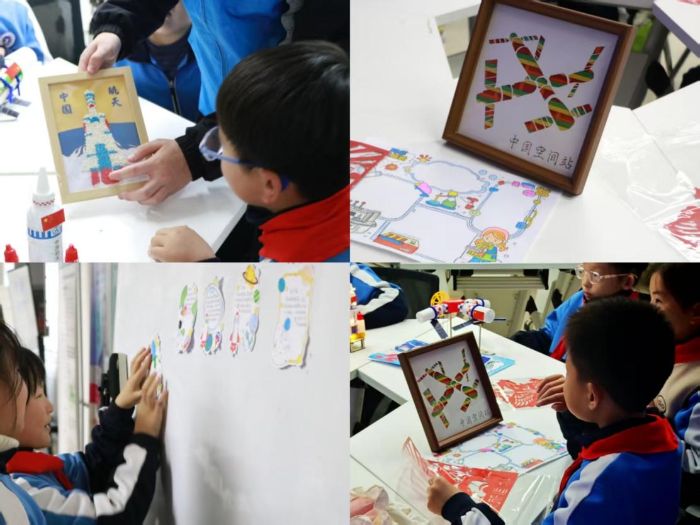 圖9 非遺手工環節中,學生用竹編、種子拼貼等工藝制作航天主題作品