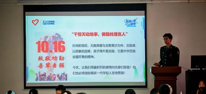 宣講鑄魂:深植兩彈一星精神禮贊核工輝煌成就理論宣講環節以“兩彈一星”精神為核心,構建“精神深植+成就溯源”雙軌育人體系。宣講團成員以鄧稼先隱姓埋名鉆研核彈、錢學森沖破阻礙歸國報國等科學家事跡為線索,深入闡釋“熱愛祖國、無私奉獻,自力更生、艱苦奮斗,大力協同、勇于登攀”的“兩彈一星”精神內核,讓抽象精神變得可感、可觸、可學。