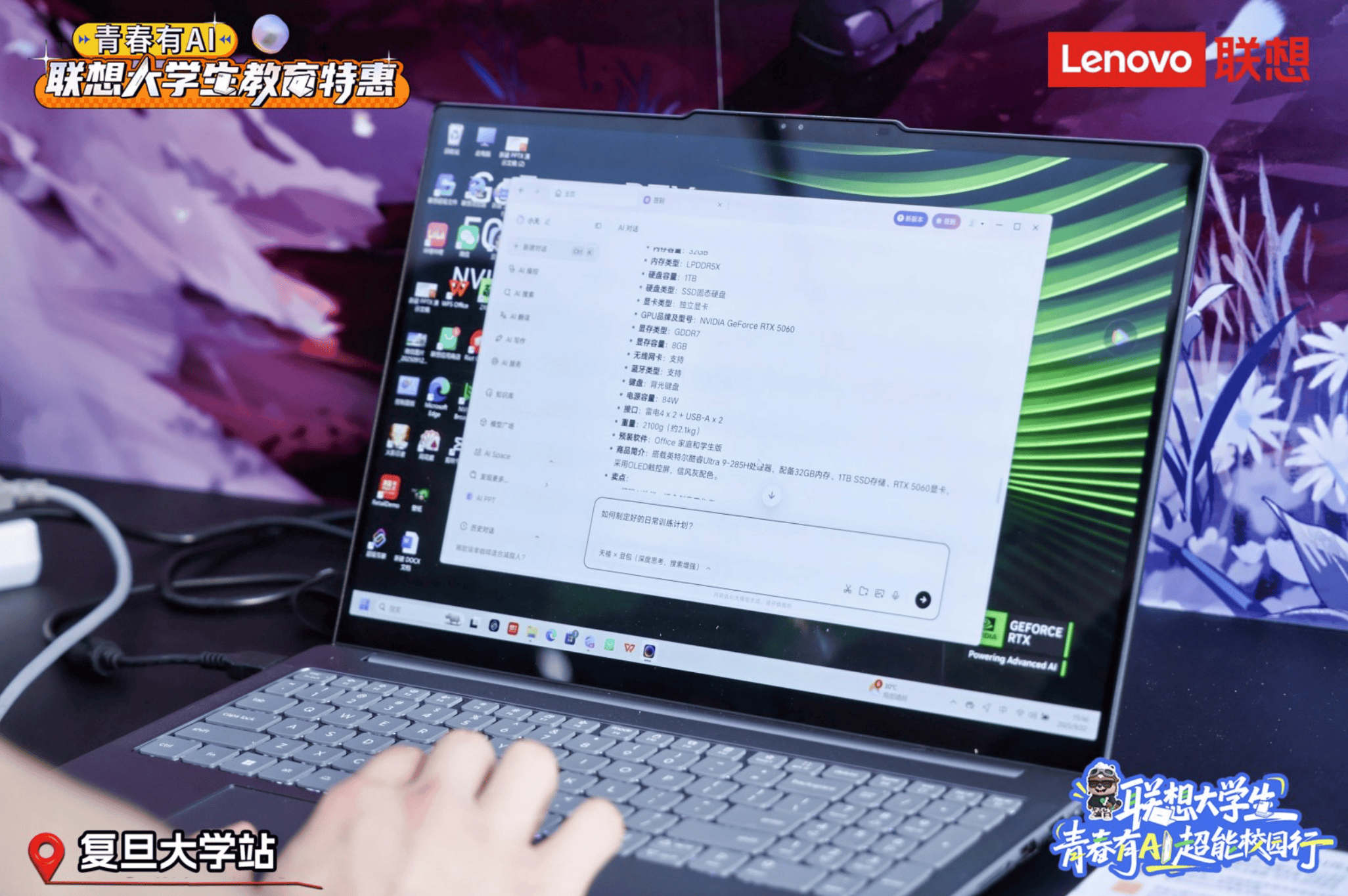 在“聯想大學生‘青春有AI’超能校園行復旦站”活動中,聯想通過兩大核心環節構建了一個從認知到實踐、從技術到場景的完整AI體驗平臺。一方面,活動匯聚多位行業嘉賓與學者,從多維度解析AI技術脈絡與應用前景;另一方面,借助聯想全線AI終端產品,為復旦學子帶來沉浸式的智能科技體驗,真實展現AI在學習、創作與日常中的賦能價值。