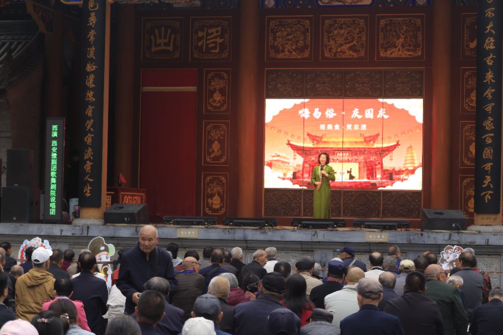 同學(xué)們現(xiàn)場觀看了題為“嗨易俗·慶國慶呷美食·賞非遺”的秦腔專場演出。演出以歷史傳承為主線,結(jié)合現(xiàn)代舞臺技術(shù),生動呈現(xiàn)了秦腔藝術(shù)的時代生命力。演員們精湛的唱腔演繹和富有張力的表演,使觀眾深切感受到西北戲曲高亢激越的藝術(shù)風(fēng)格。此次活動不僅豐富了學(xué)生的審美體驗,也增強(qiáng)了其對地方戲曲群眾基礎(chǔ)和社會影響力的直觀認(rèn)知。